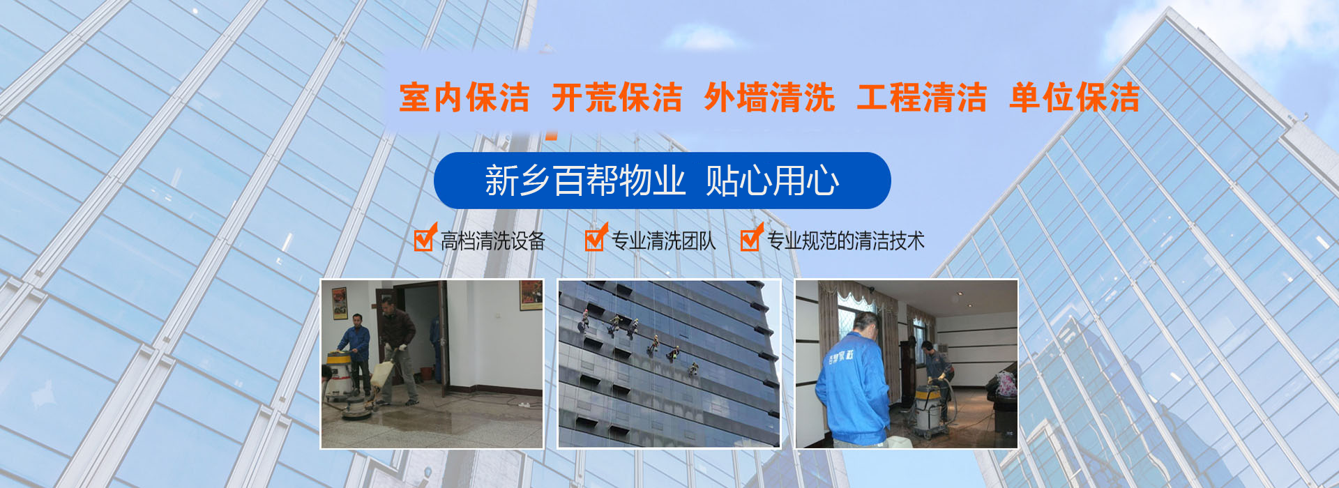 熱烈慶我新鄉(xiāng)百家保潔公司網(wǎng)站建設(shè)成功投入運行,公司主要承接新鄉(xiāng)家政保潔、高空外墻粉刷清洗、公司廠房清潔、4S店擦玻璃、家電清洗、甲醛檢測、高溫殺菌消…
